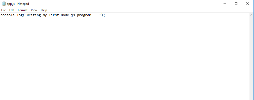 Next I jump onto writing my first Node.js program. For this I create a file name app.js and write some code into it as follows :